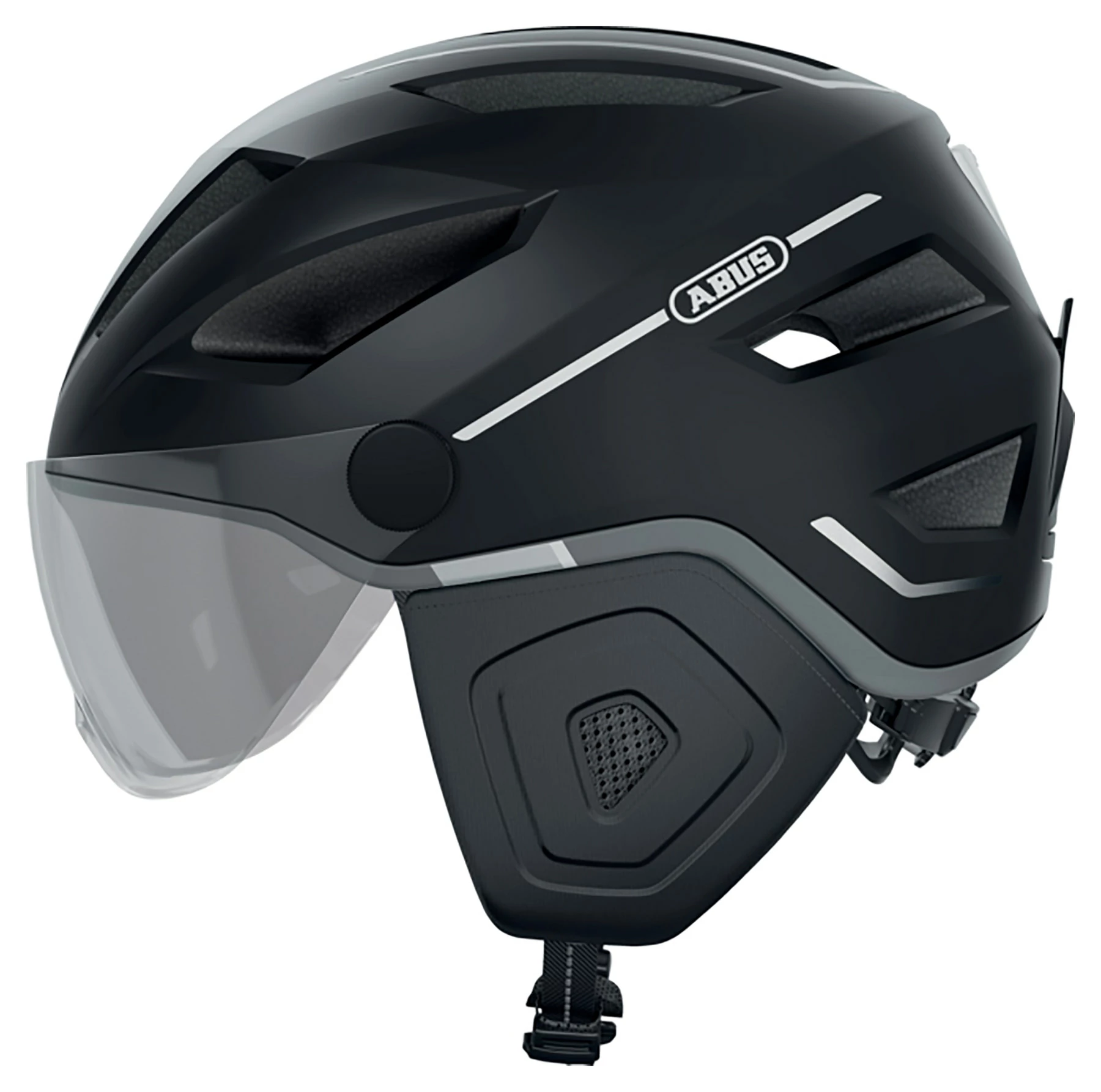 With the Pedelec 2.0 ACE, ABUS offers a bicycle helmet that meets the high safety requirements of the big city. Its deep temple area provides the required additional protection. The Pedelec 2.0 ACE is also characterised by the integrated rain hood, which can be quickly pulled over the helmet at the first sign of rain. The especially bright, rechargeable light and the replaceable visor offer additional, passive protection.