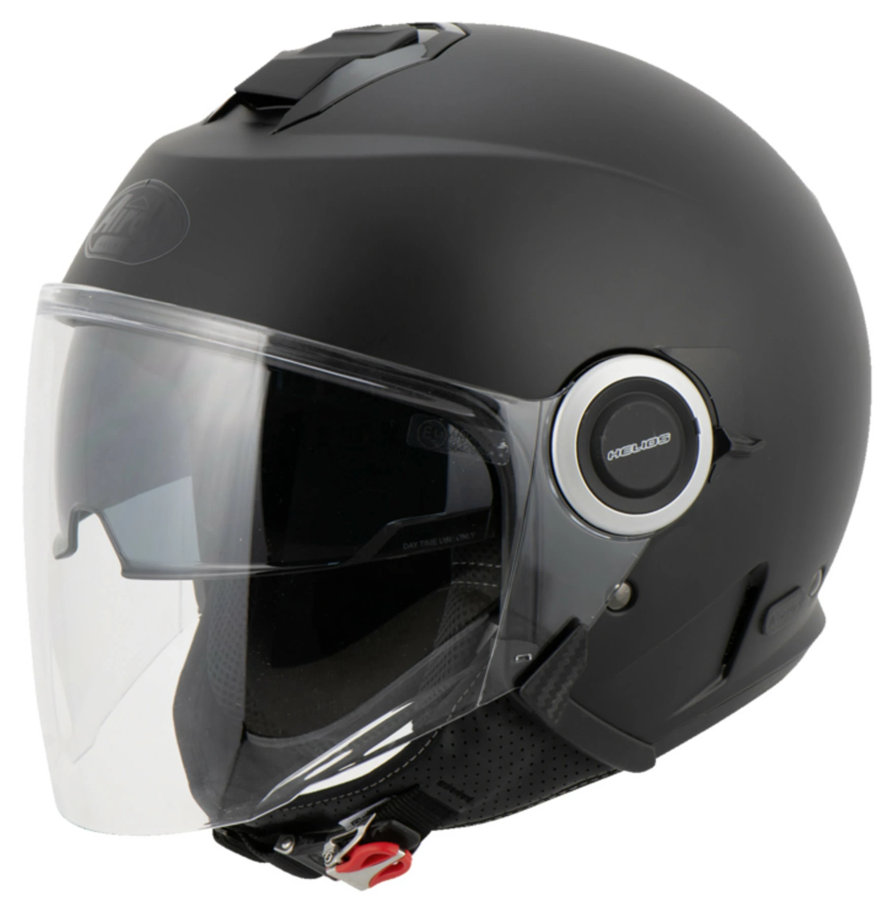 Now here’s an Airoh jet (open-face) helmet with a memorable name – *Helios*, the Sun god of Greek mythology. Airoh makes this helmet in three outer shell sizes (XS-S-MS, MC-L, XL-XXL), which gives an elegant, compact look and outstanding fit for different head sizes. Wearing this open, lightweight helmet with sun visor almost feels otherworldly. And as for the riding experience… well that’s just great fun!