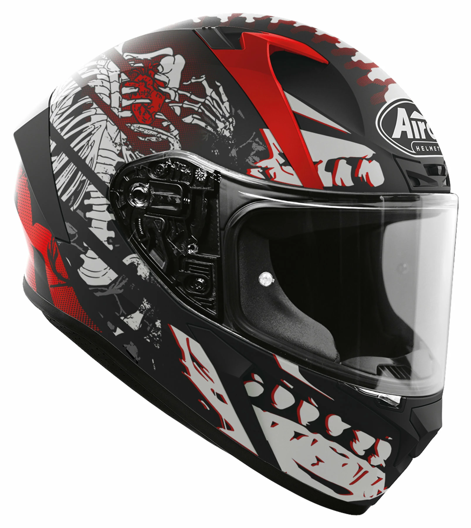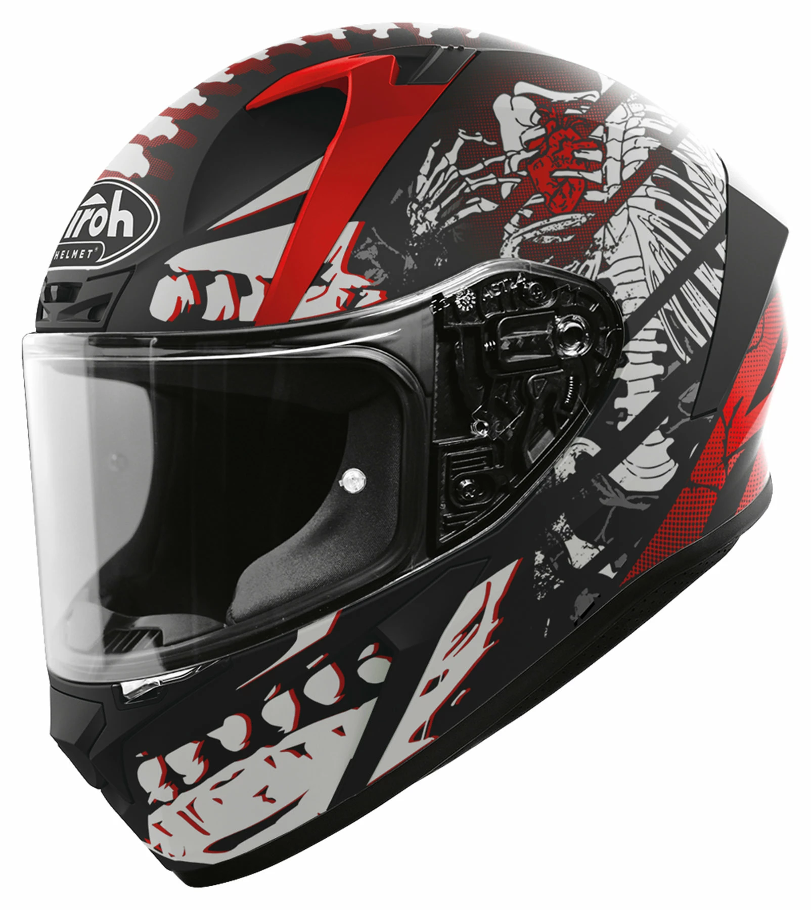 Valor essentially means the sort of courage and heroism you associate with knights in shining armour. And that may well have been the inspiration for the Airoh *Valor*. Or at least it explains the strong, angular lines that are a feature of this helmet. Uncompromising design with a hint of aggression – this is a full-face sportsbike helmet that meets the demands of serious motorcycle riders. It features an outer shell made of High Resistant Thermoplastic (HRT), a racing visor with extra-wide field of vision and a very effective ventilation concept.