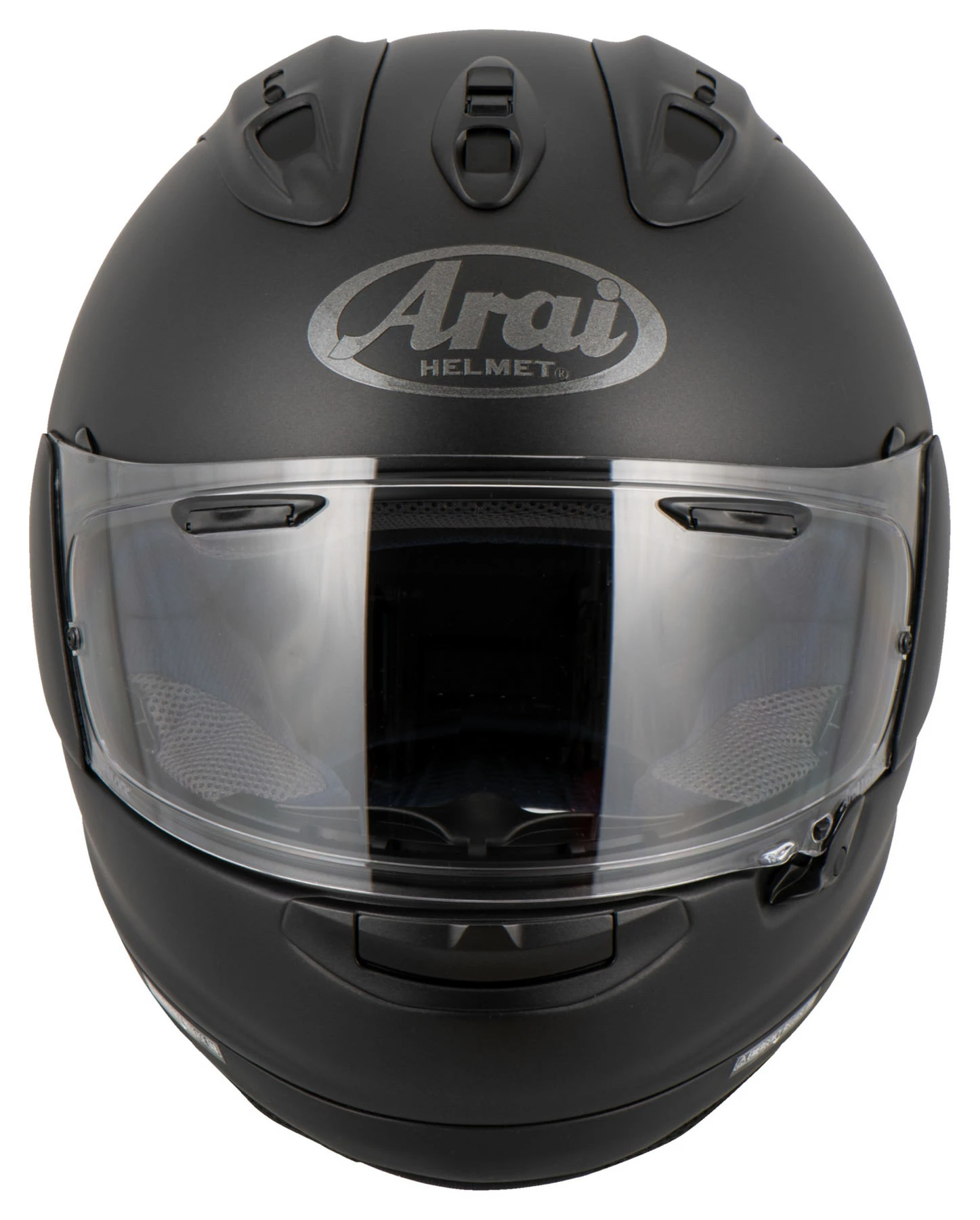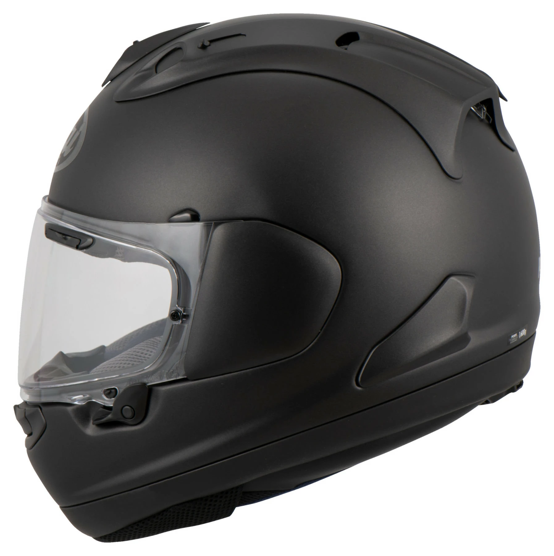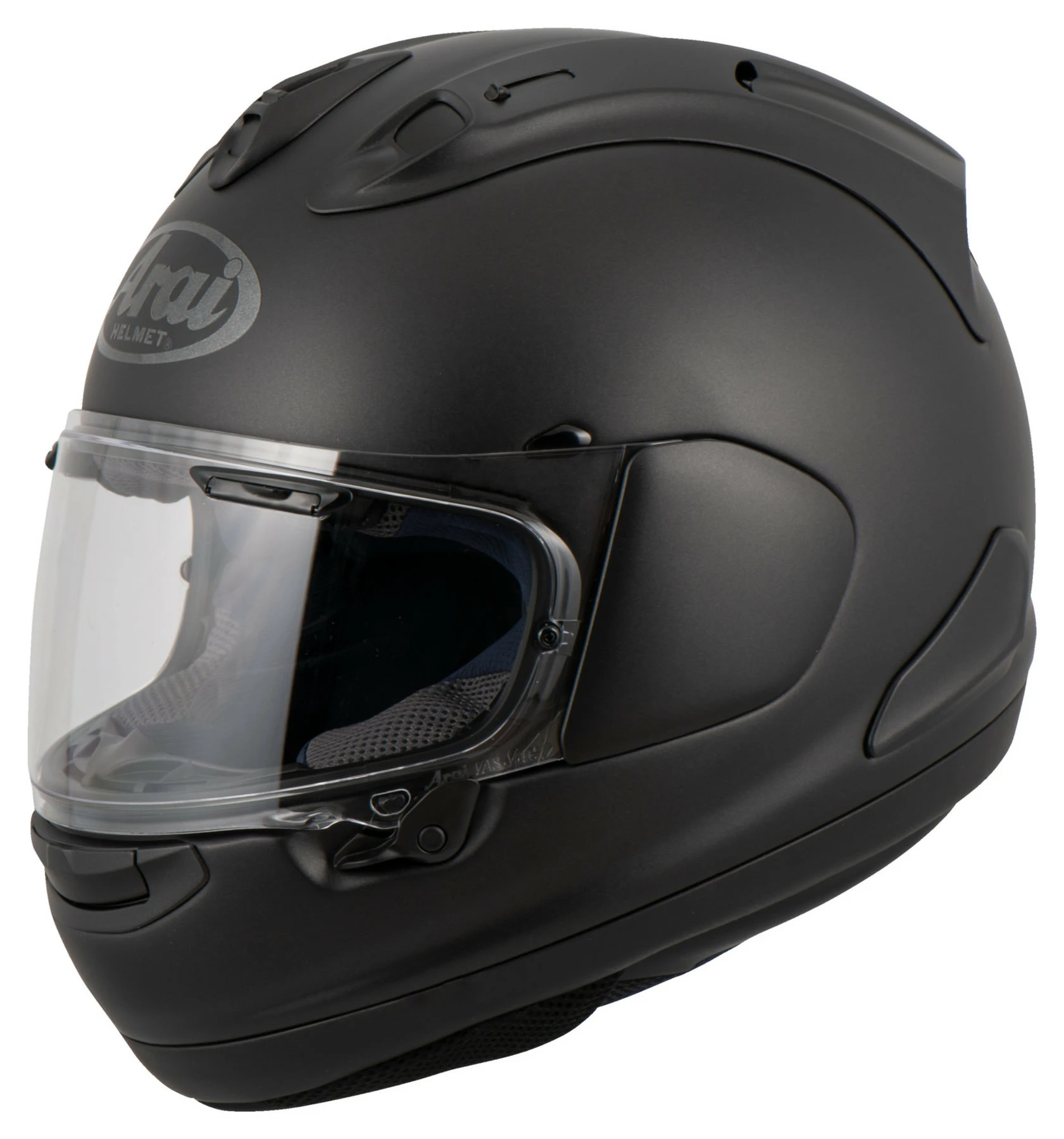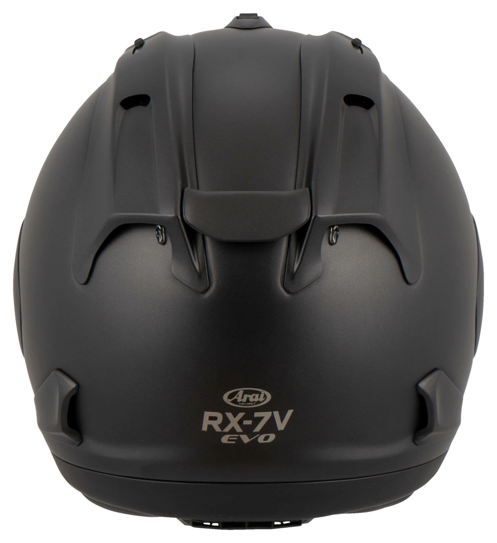 Arai *RX-7V EVO* – what a motorbike racing helmet. Arai has reached the next level of helmet evolution. Improved aerodynamics, more air and ventilation bring you an absolute plus in riding fun with this premium full-face helmet. The Arai *RX-7V EVO* is not only one of the best helmets on the market, but also one of the “airiest”. An exemplary ventilation system with large inlets and a 2-way adjustable venting system ensures an exemplary helmet climate under the shell. The glide behaviour of the *RX-7V EVO* is also unparalleled, which stands for even more protection and safety. Get ready for the Arai *RX-7V EVO*.