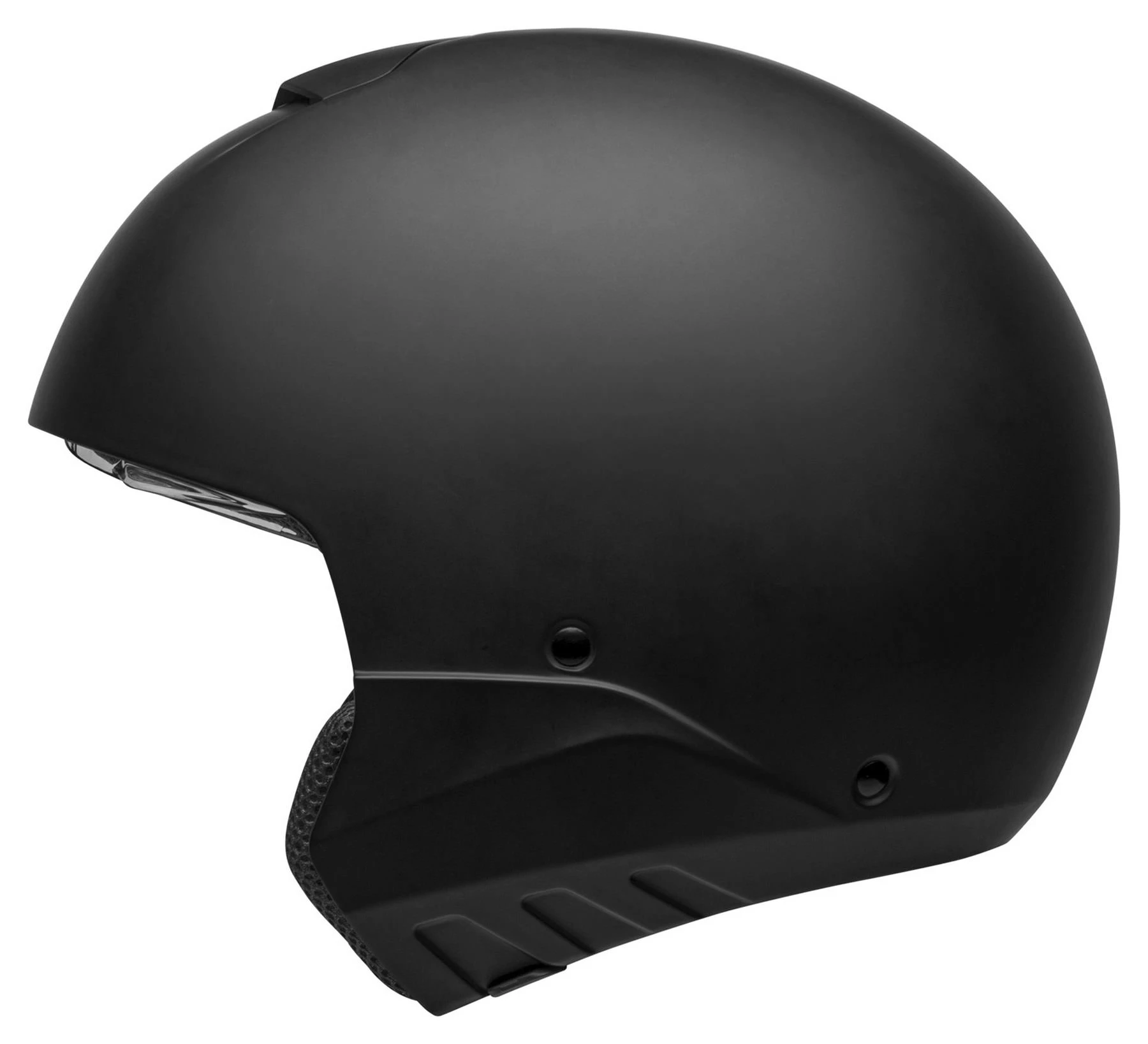 Neo-retro is a very popular trend in the motorcycle world. That goes for the motorbikes themselves, but also biker gear and especially helmets. Bell has taken this trend on board and brought out the *Broozer*, a modular (flip-up) helmet that goes perfectly with modern café racers and even the naked bike scene. With clean lines, large eye port and removable chin piece. Plus great comfort and convenience, a good weight, and strong, aggressive design.
