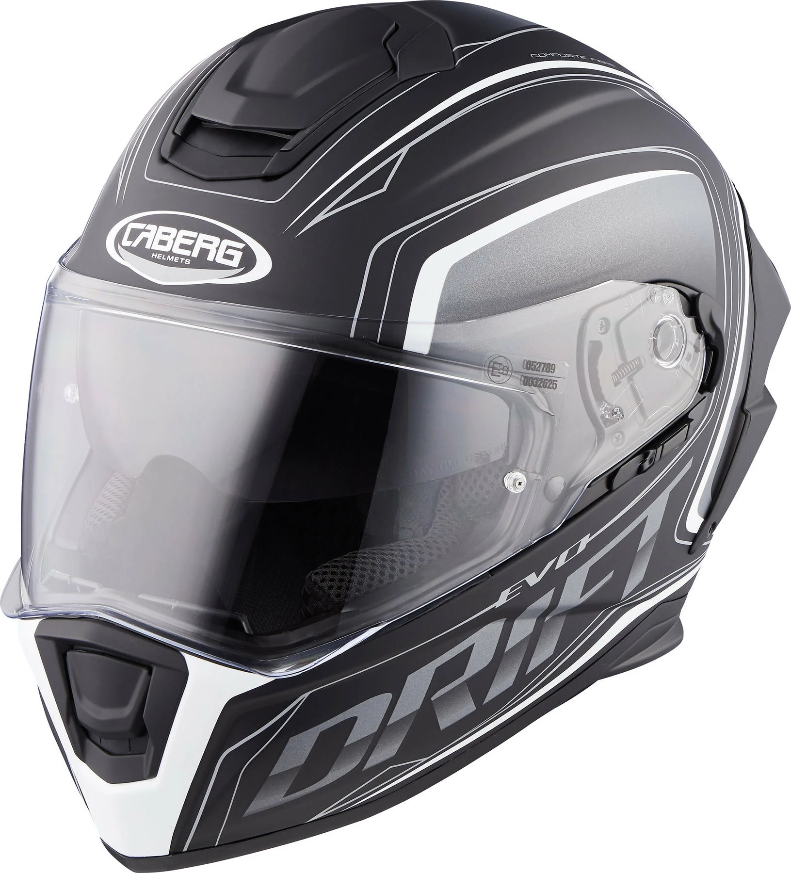 Serious touring bikers often have high expectations when it comes to their choice of headgear. So, of course, they’re not going to settle for just any helmet – they want the highest level of both protection and comfort. And that’s exactly what the Caberg Drift *EVO* full-face helmet delivers. Outer shell made of high-quality fibreglass, comfort lining, double visor system that is perfect for touring plus ingeniously designed ventilation system – all this adds up to a fantastic helmet.