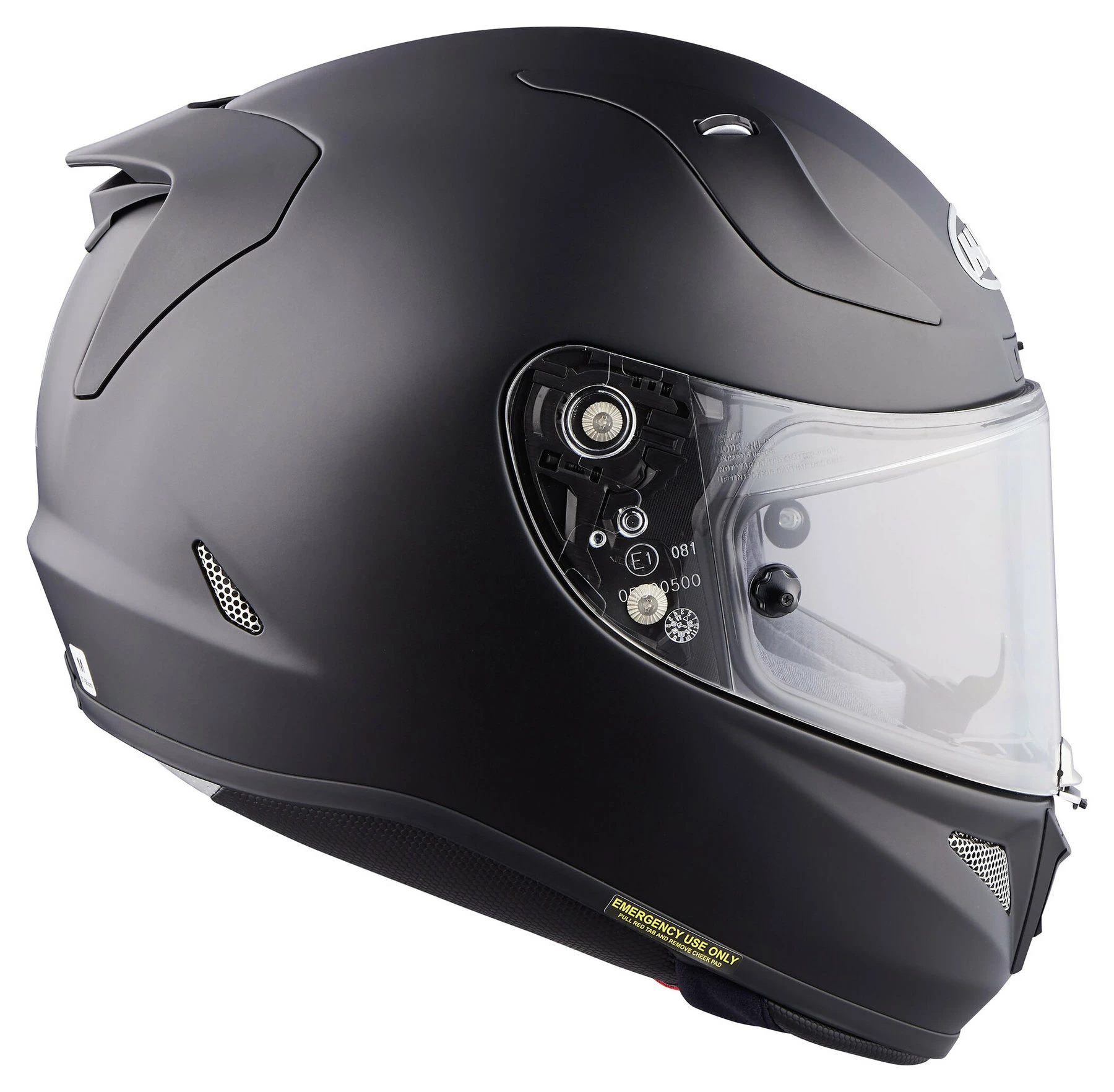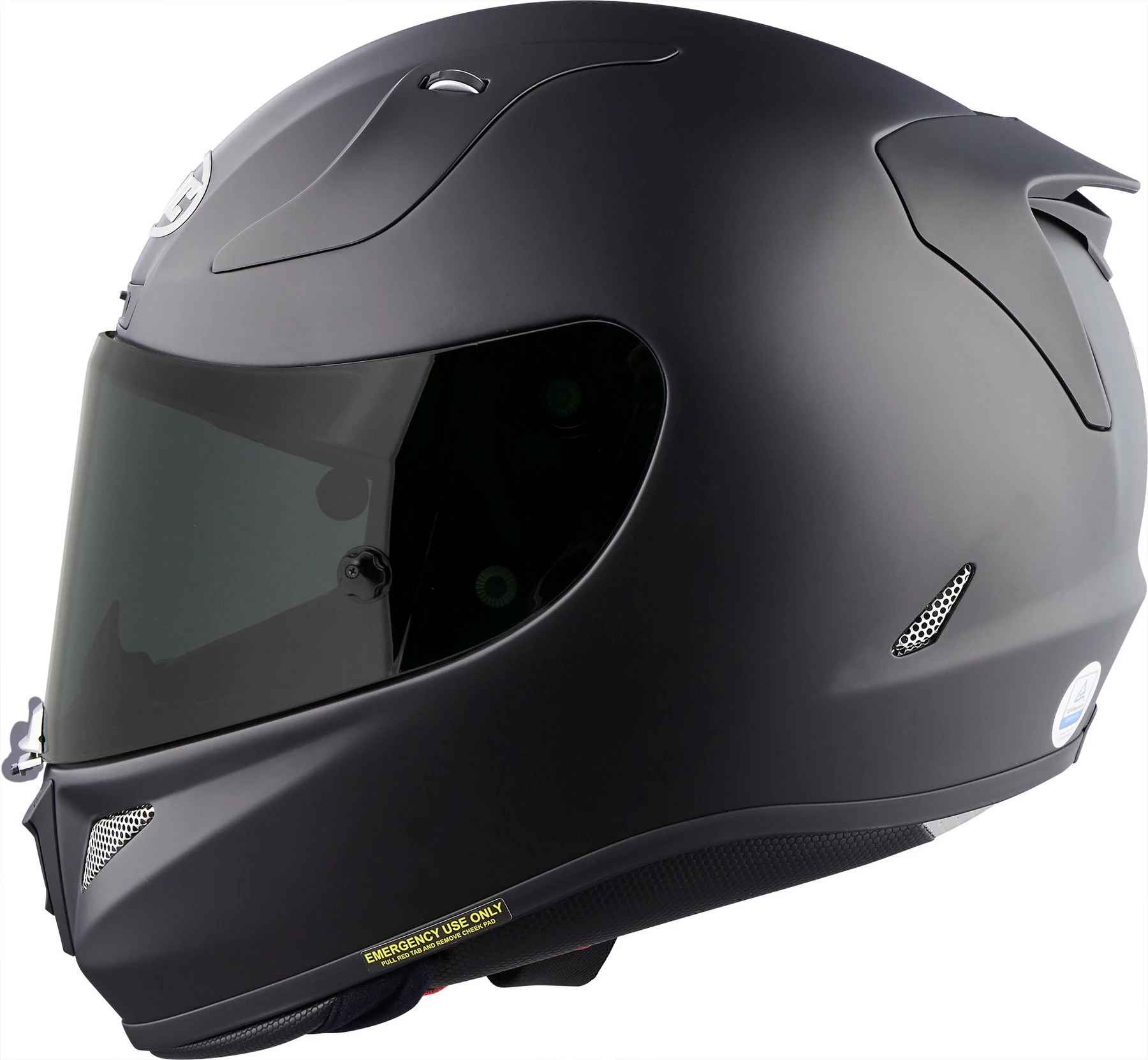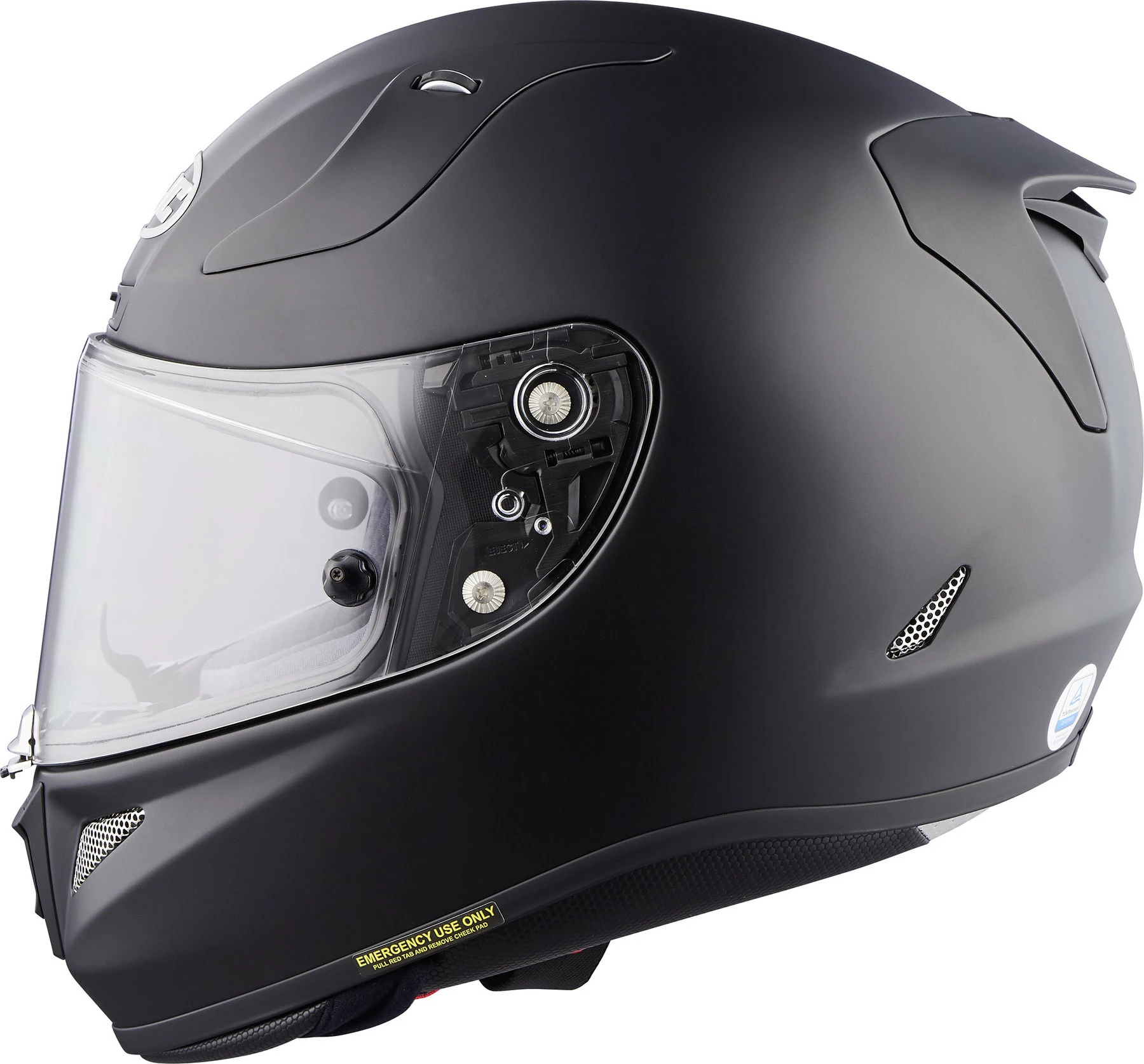 - Other features: chin curtain and breath guard are included. Emergency quick-release cheek pads (makes helmet easier to remove in an emergency), double visor closure, and dark smoke tear-off visor
