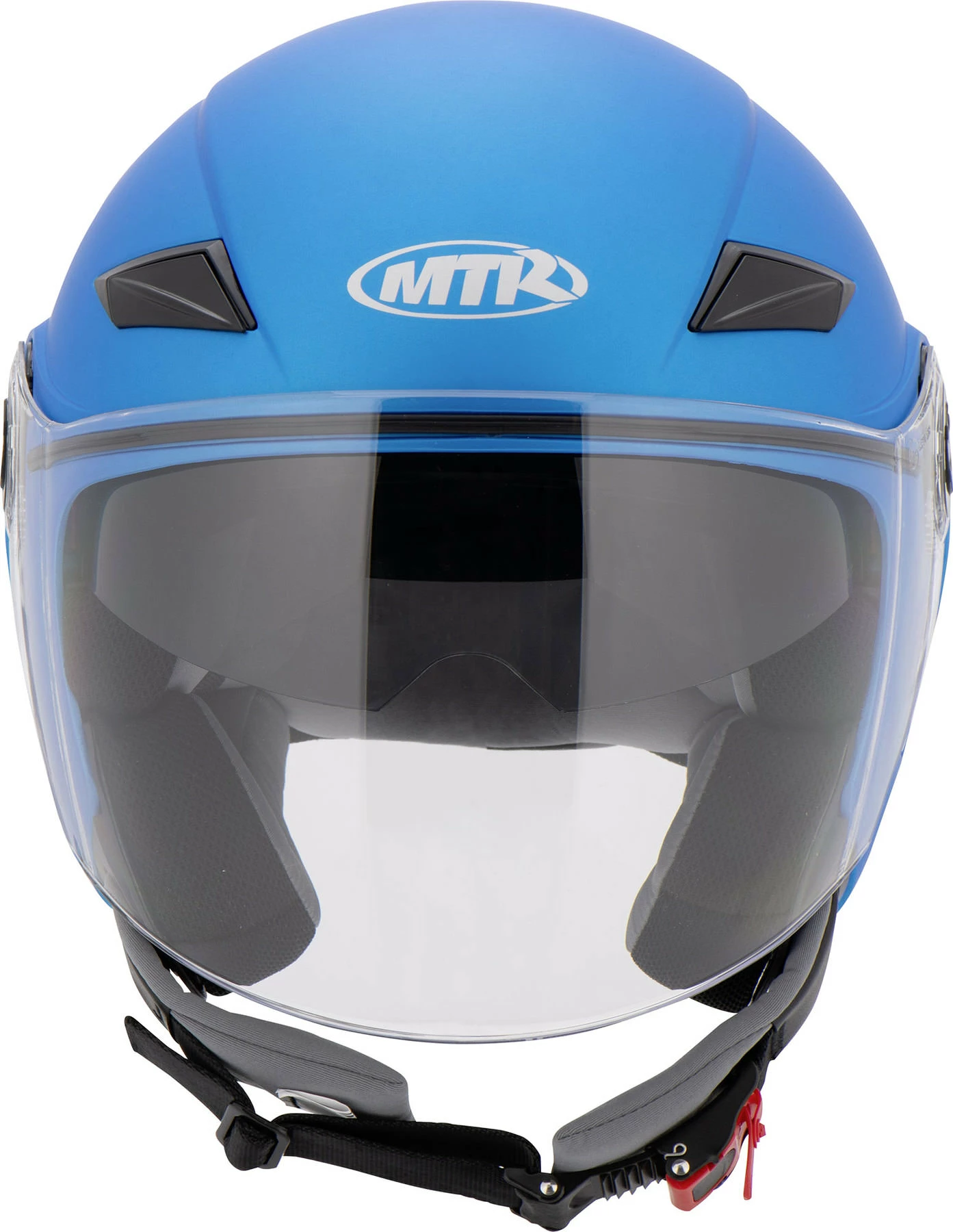 Sporty demi-jet helmet made of ABS. Optimal glare protection ensured by the integrated sun visor. Convenient side-mounted lever to open/close sun visor.
