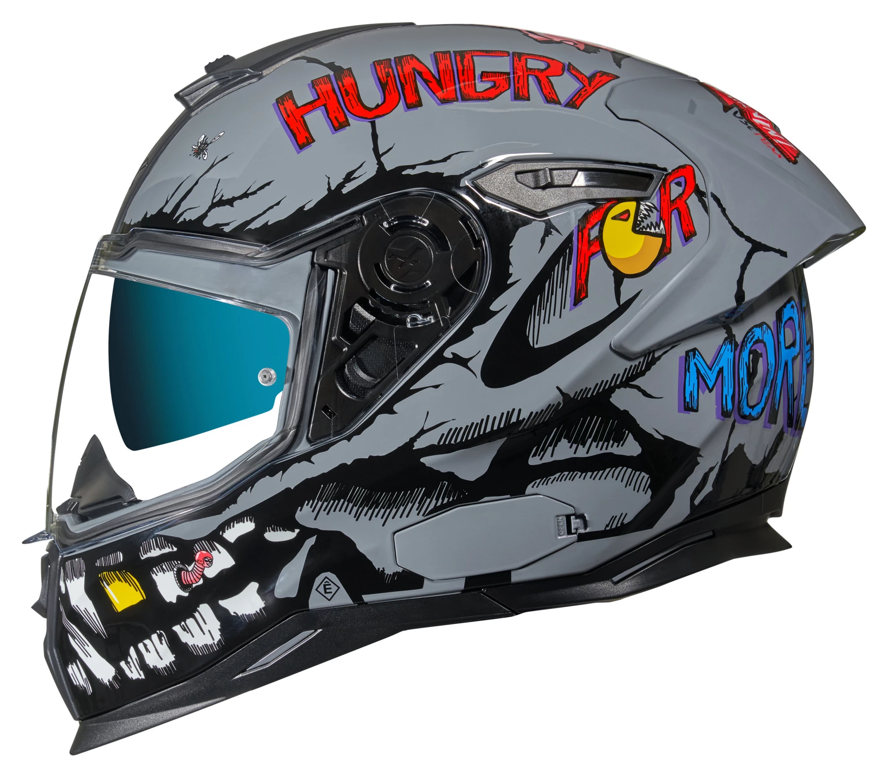 This is it, the NEXX *SX.100R*. A full-face helmet designed for the best aerodynamics. It shows itmself in its distinctive shape and his equipment with a very efficient rear spoiler. This helmet clearly shows its top performance when it comes to reducing turbulence at high speeds. The NEXX *SX.100R* offers you sporty comfort with the innovative inner lining made of ergonomic and breathable panels that allow more fresh air around the head.
