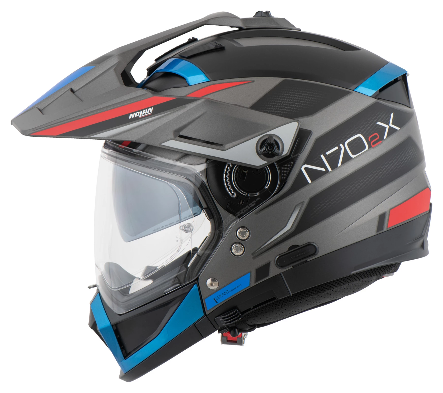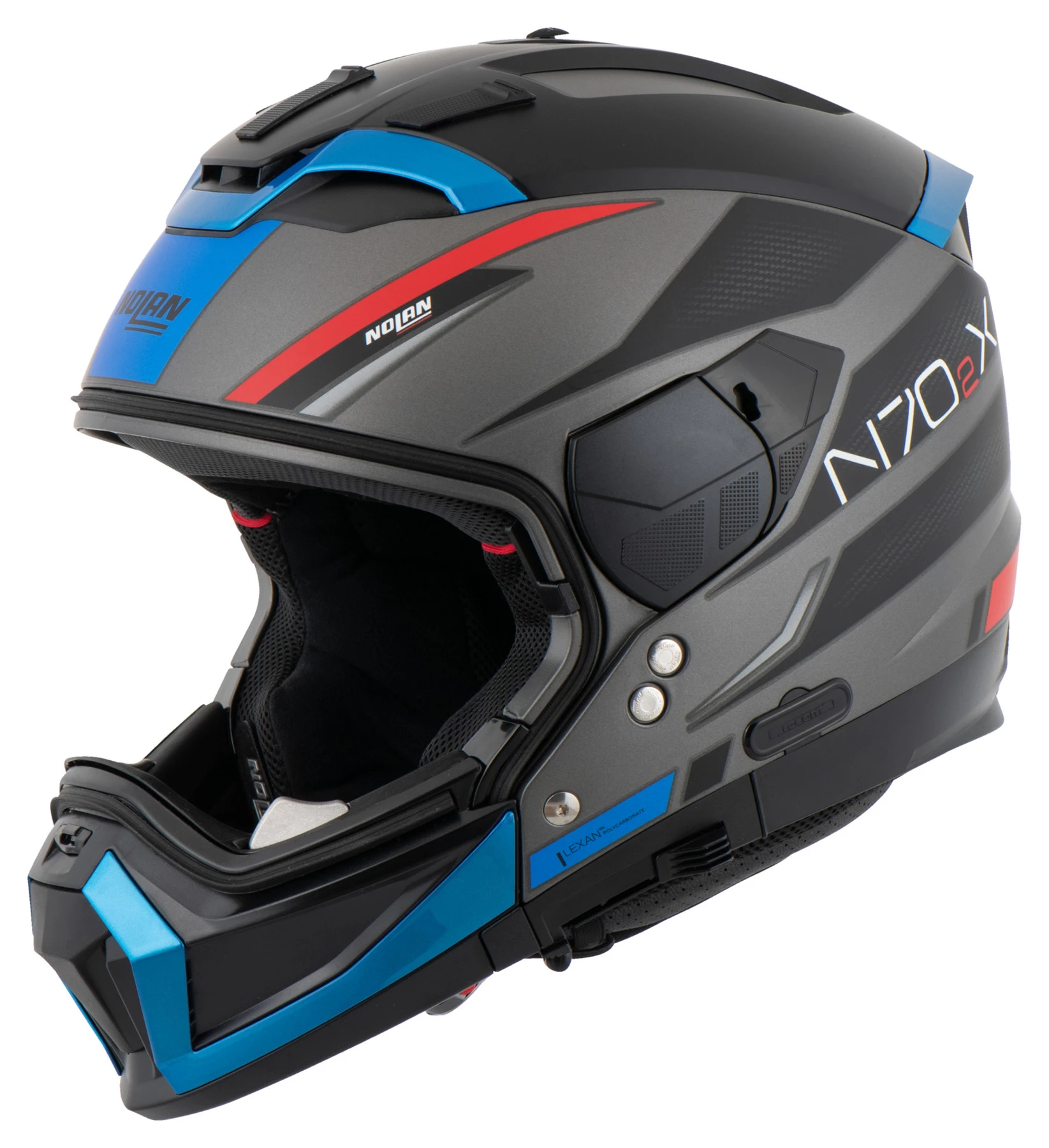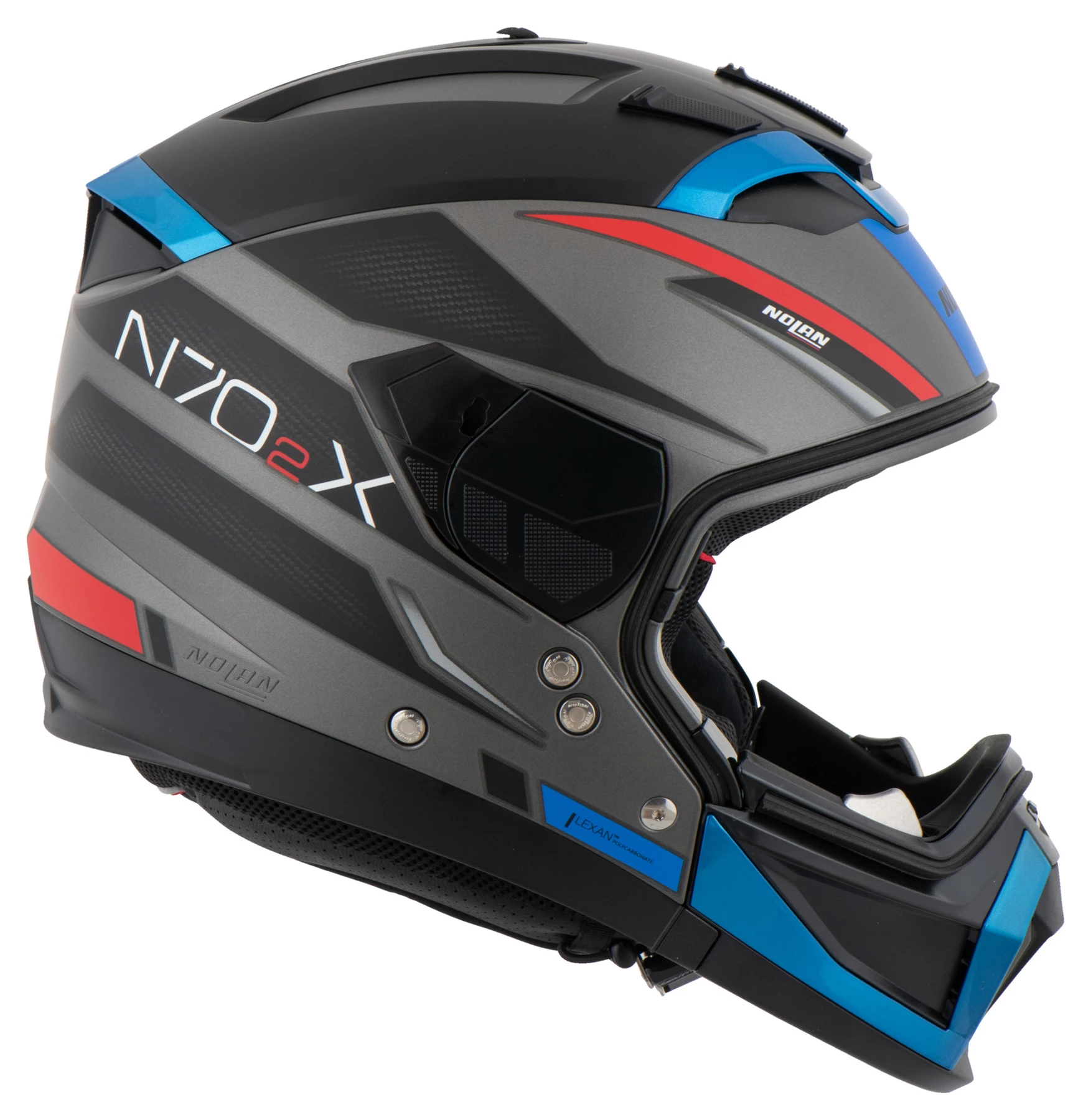 The crossover helmet is a type of helmet which Nolan takes very seriously. And if you think this motorcycle helmet is neither one thing nor the other, you couldn’t be more wrong. In fact, the Nolan *N70-2 X* works brilliantly as at least four (!) different helmets: as jet (open-face) helmet, jet with full-face visor and jet with sun visor, as jet motocross helmet, full-face motocross and “normal” full-face.