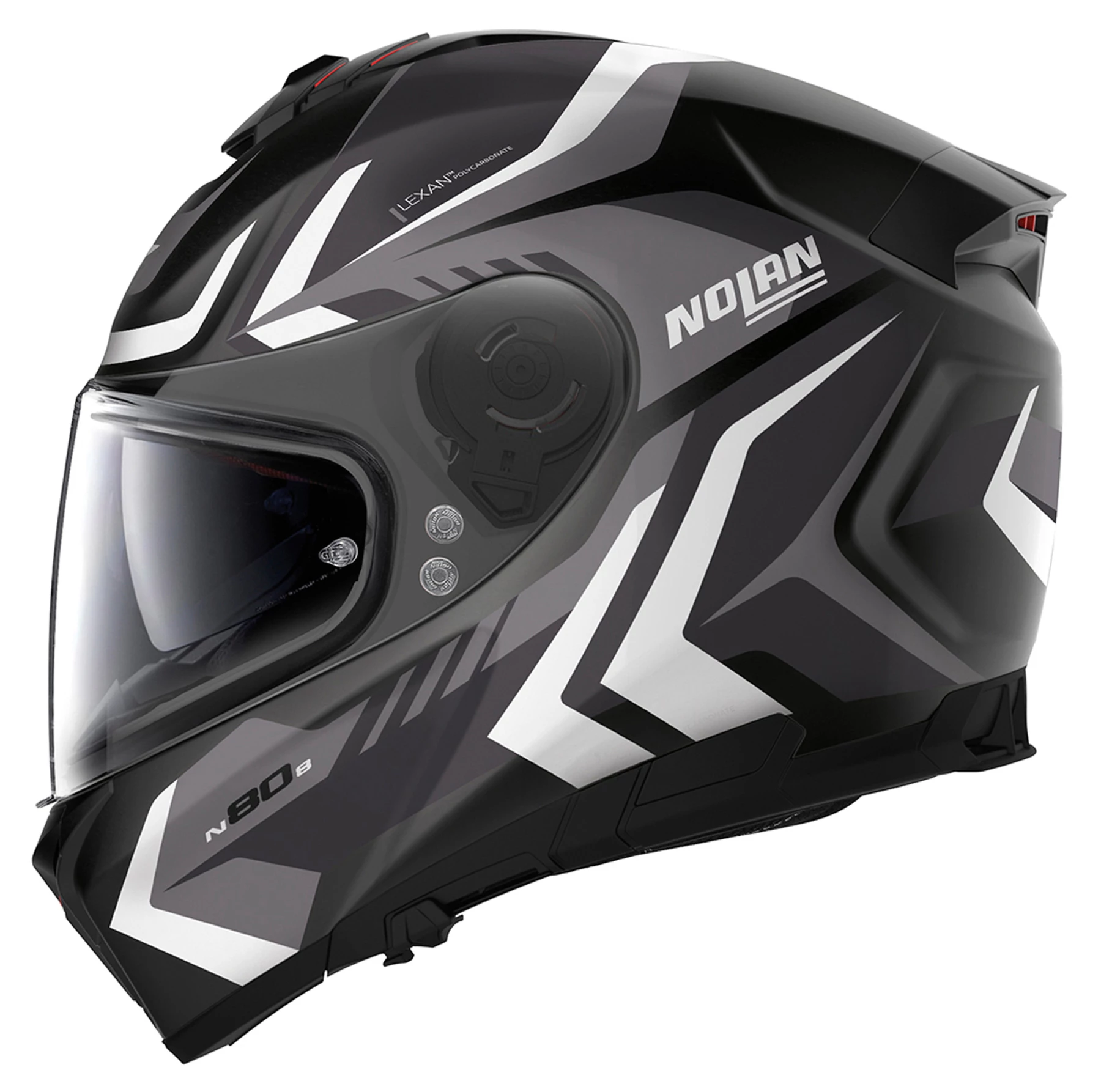 The Nolan N80-8 combines modern Italian design with the latest technology. Best ventilation, a particularly comfortable interior, a lining adjustable at the top of the head. The newly developed visor mechanism ensures that the visor is only on the last millimeters to the circumferential seal on the helmet, but then precisely and evenly against it. The advantage, the Pinlock inner visor no longer brushes against the visor seal and can thus noticeably increase in surface area. In addition, the Nolan *N80-8* offers the Nolan Emergency Release System (NERS) for greater safety by quickly removing the cheek pads in the event of a fall.