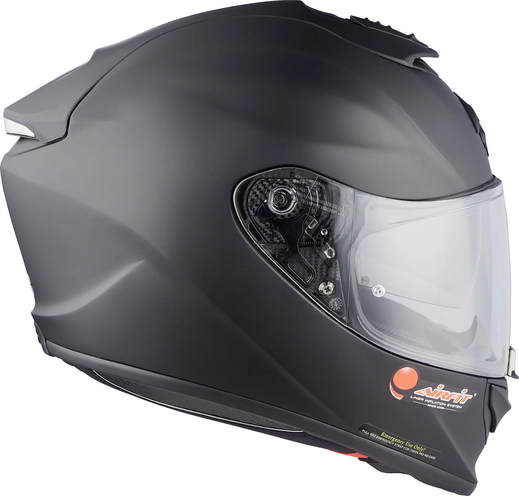 With the innovative Airfit system, the cheek pads can be inflated with an infinitely adjustable quantity of air by means of an air pump in the chin bar. The helmet adapts to your unique face shape. For extra wearing comfort and major noise reduction. The air is released again at the press of a button.