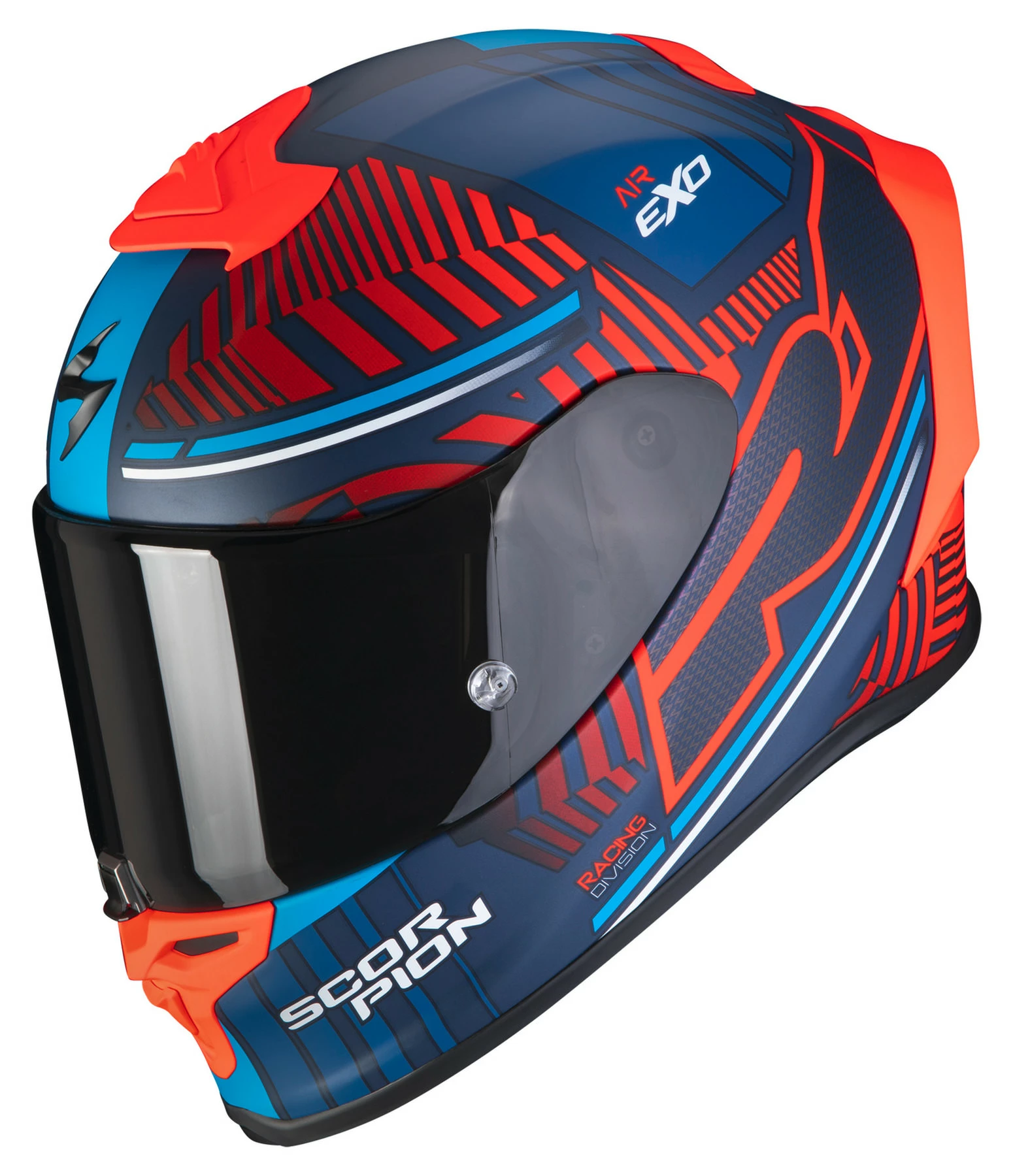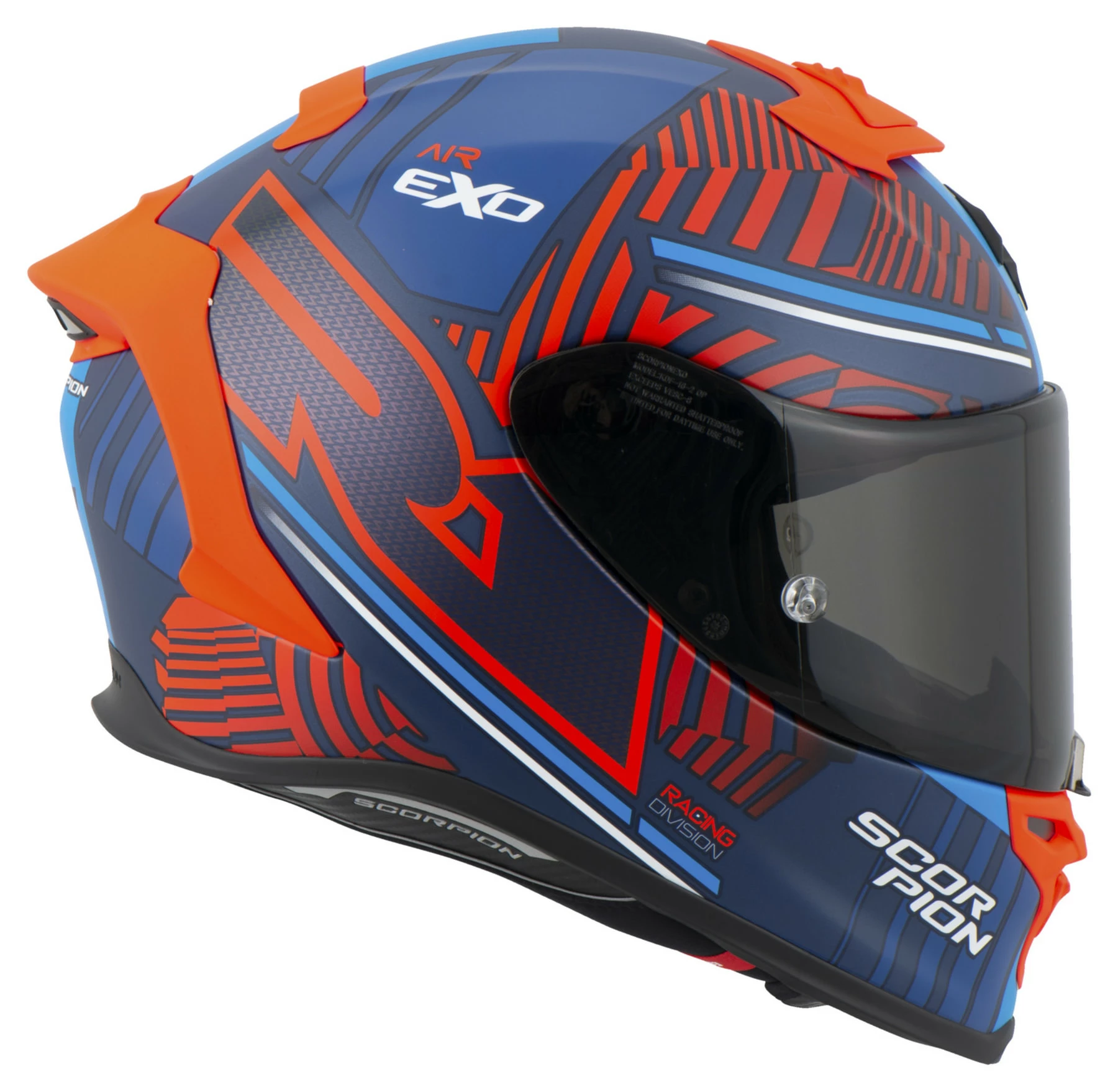 Scorpion *EXO-R1* is the full-face helmet from France that’s worn by professional racers. It was designed with one thing in mind – to allow you to concentrate purely on the circuit, your race, your riding style and your machine. Ultra-lightweight, top features, and with special ventilation that guarantees a permanent air flow, right from the start. Three outer shell sizes and the Airfit system together ensure that your Scorpion *EXO-R1* is always a perfect fit.