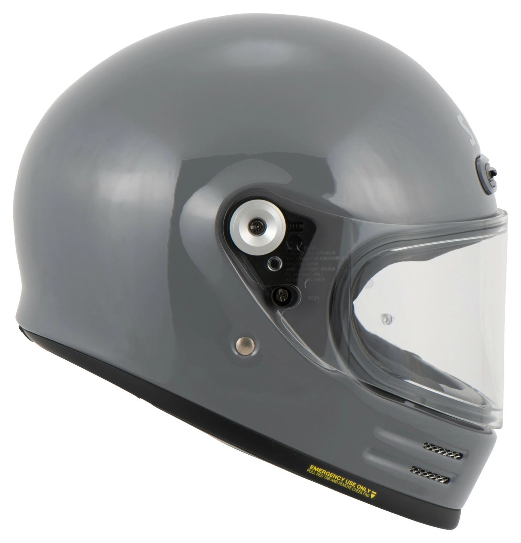 We present another member of the Neo-Classic Series from Shoei. Traditional motorcycle helmet design combined with the latest technology to give you top comfort and functionality – those are the ingredients from which the Shoei *Glamster* was developed. What’s more, the visor was designed specifically for this helmet, and is secured with special aluminium screws. The three outer shell sizes and comfortable lining ensure a superb fit.