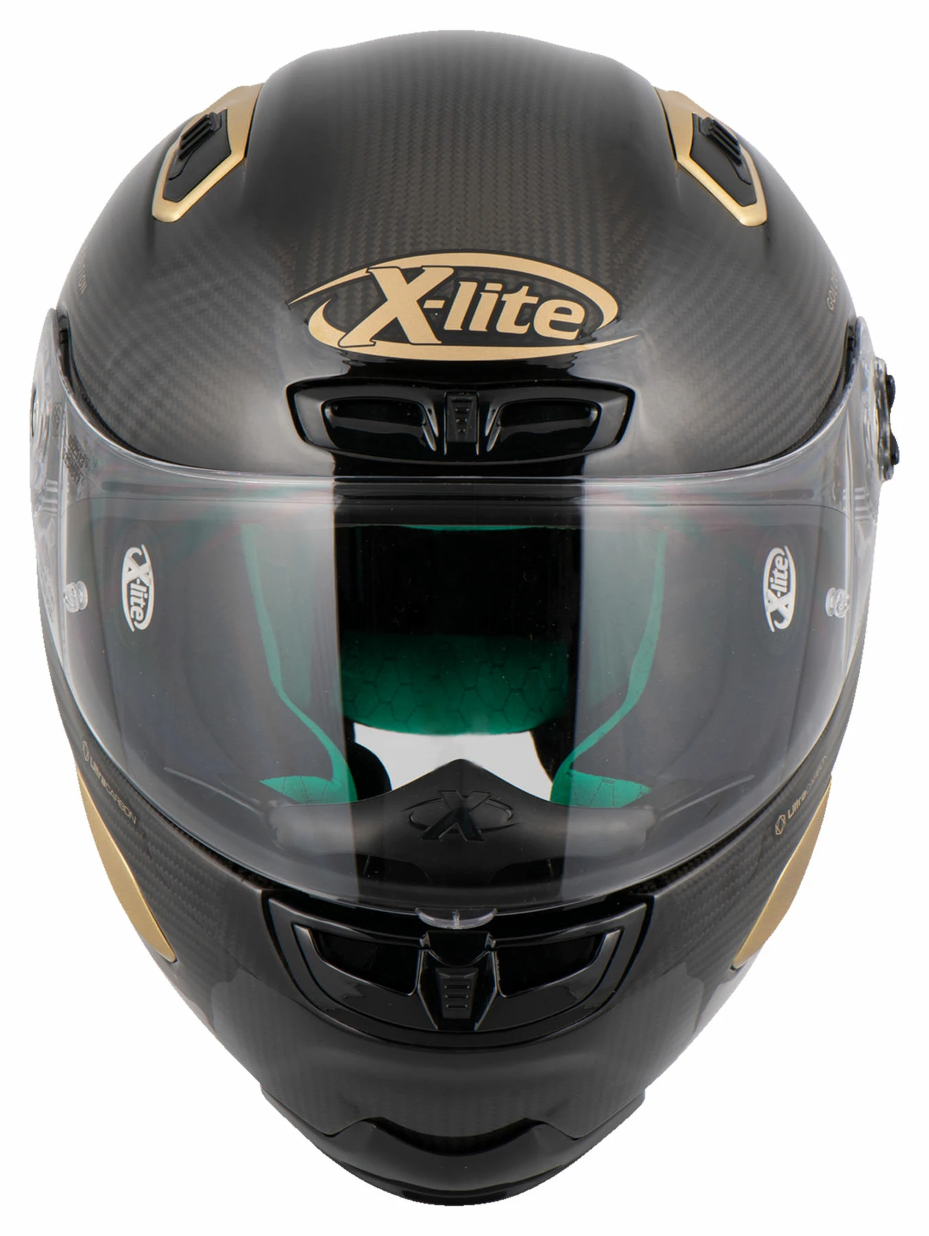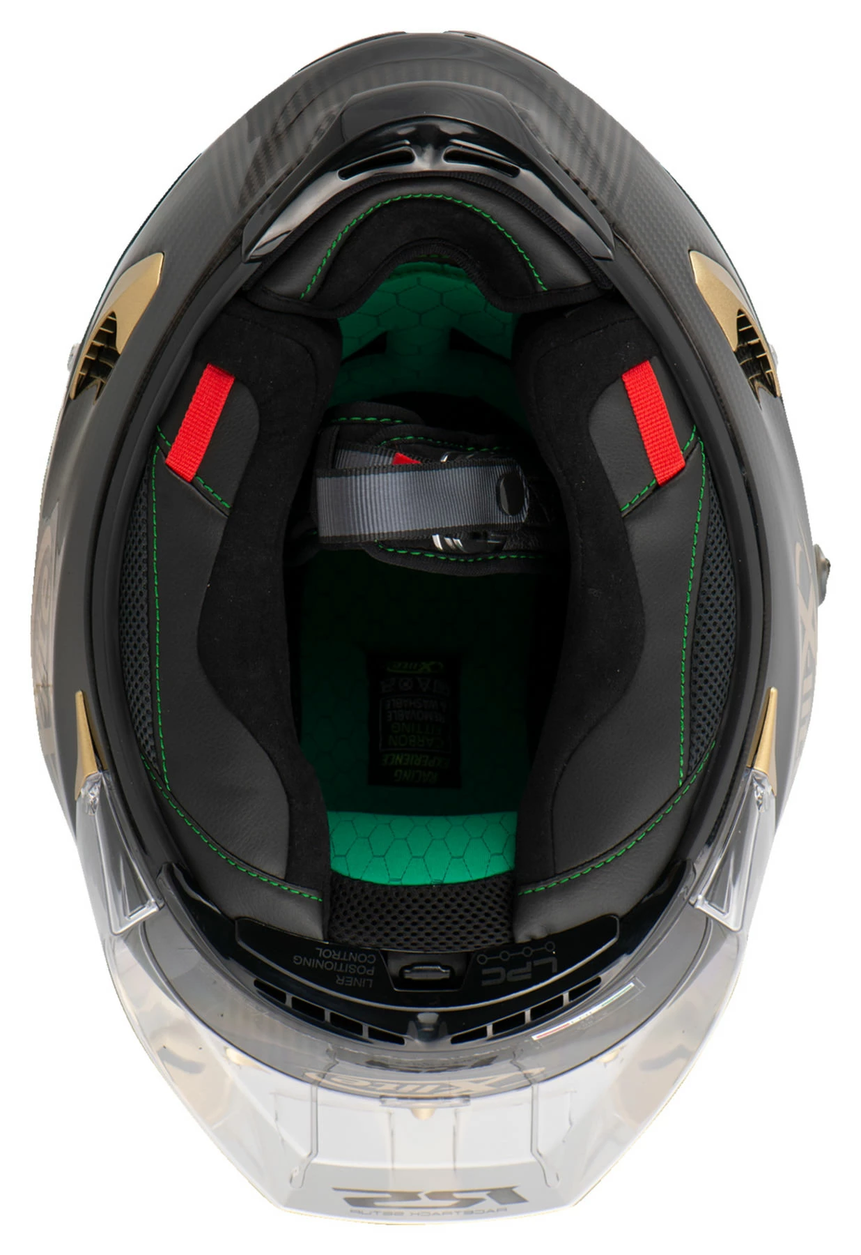A suitable Racetrack Setup (RS) with smoked visor and transparent Racetrack Aerodynamic Spoiler (RAS) are of course standard components of a true MotoGP helmet. If you want more comfort, you should go for the X-Lite *X-803 RS Carbon* with Liner Positioning Control system (LPC), which allows you to adjust the height of the helmet precisely to the shape of your head. This racing helmet gives you all this and more. You like it? Then you it can be yours!